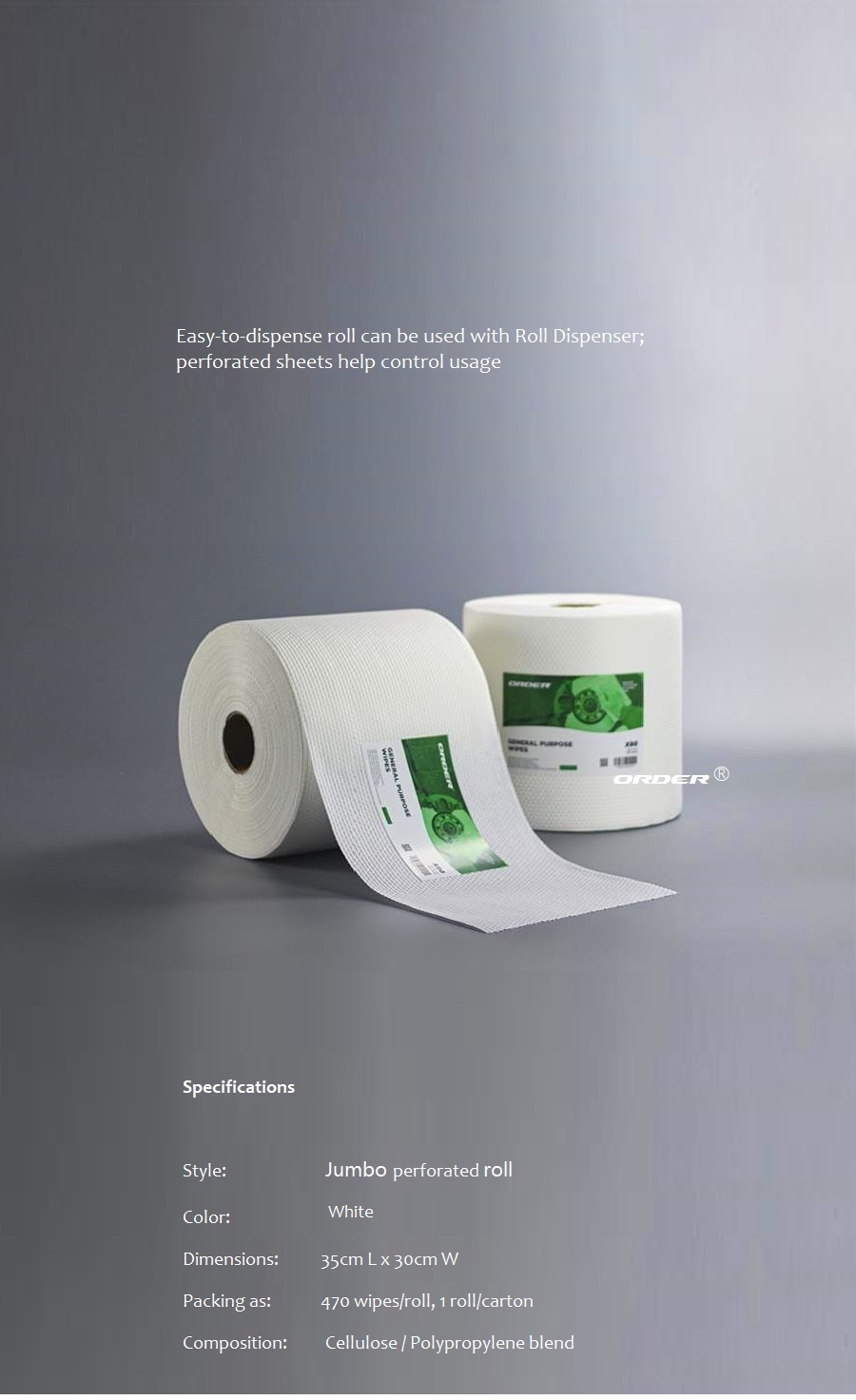 • Sold as :   900 wipes/Roll or Customized
